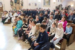 Pozdravio je potom kanonike Stolnog kaptola sv. Petra, svećenike iz župa grada Požege i Katedralnog arhiđakonata te središnjih biskupijskih ustanova na čelu s generalnim vikarom Želimirom Žuljevićem, preč. Dogana koji je predvodio trodnevnu pripravu te đakone, redovnike i redovnice, vjeroučitelje, bogoslove i pitomce požeškog Kolegija. Potom je uputio pozdrave i javnim dužnosnicima na čelu s požeškim gradonačelnikom Borislavom Miličevićem i požeško-slavonskom županicom Antonijom Jozić, predstavnicima gradskih crkvenih i civilnih udruga kao i predstavnicima Hrvatske vojske i policije. Pozdravio je i sve vjernike požeških župa, osobito djecu i mlade iz katoličkih škola zajedno s njihovim ravnateljima i profesorima.