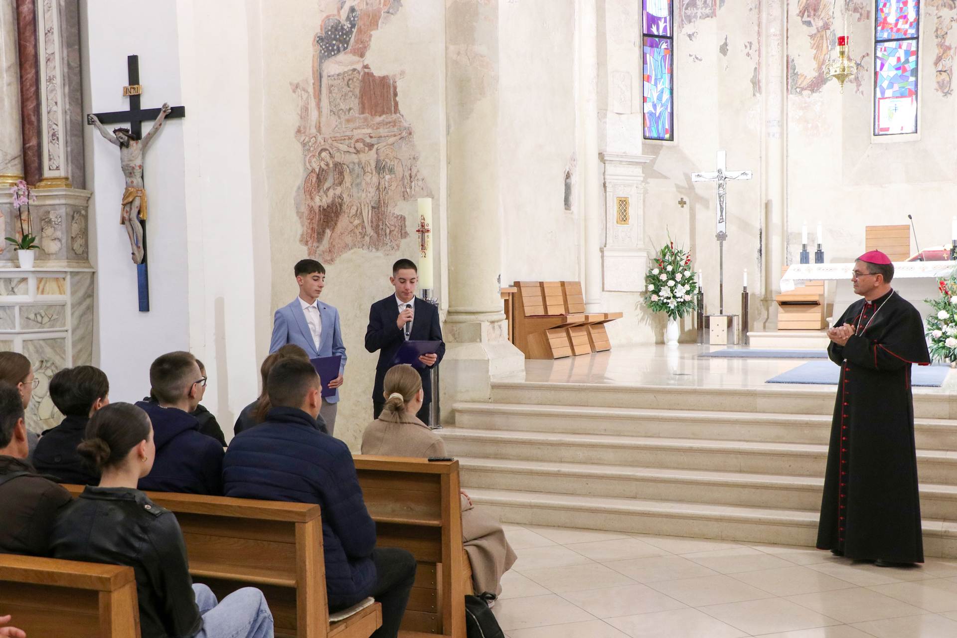 Zatim su braća Gabriel i Mihael Mršić, u ime ovogodišnjih stipendista, zahvalili biskupu i Požeškoj biskupiji za sve ono što nastoje činiti za mlade ljude kako bi im olakšali školovanje. „Kao što svi već znamo, zaista je izazovno živjeti i napredovati u današnjem svijetu. Ovom stipendijom, govoreći u ime svih stipendista, dali ste nam svoju podršku, a mi ćemo se truditi da Vas ne iznevjerimo i da Vam pokažemo koliko nam ona znači“, rekli su biskupu Ivi.