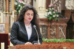 Pozdravljajući nazočne na posljednjem koncertu ovogodišnjih Orguljaških večeri, voditeljica Katedralnog zbora u Požegi Marija Ticl je predstavila ansambl i uvela nazočne u sadržaj koncerta. Večerašnji program posvećen je Blaženoj Djevici Mariji, ženi koja je stoljećima nadahnjivala skladatelje i umjetnike diljem svijeta. Kroz različite glazbene izraze, čut ćemo kako svaki autor na svoj način progovara o istoj, vječnoj ljepoti Anđeoske djevice. Neka nas ova glazba ispuni mirom, nadom i svjetlošću — upravo onime što je Djevica Marija oduvijek predstavljala u umjetnosti i vjeri.Na kraju je zahvalila gospodinu Mašiću za doprinos i angažman u organizaciji ovogodišnjih Orguljaških večeri u Požeškoj Katedrali.
