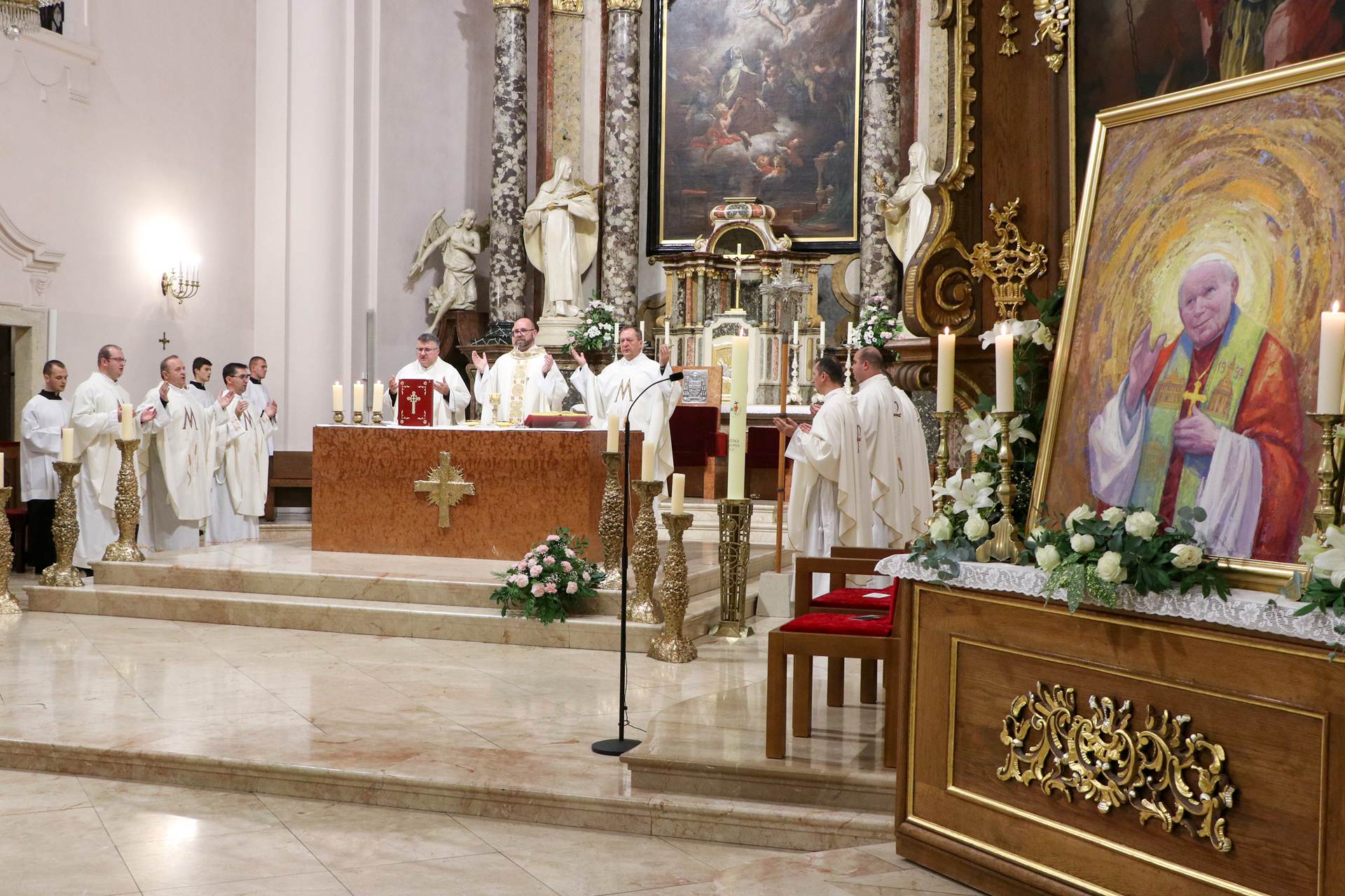 Pozdravljajući nazočne svećenike, časne sestre i sve druge sudionike slavlja, generalni vikar je podsjetio vjernike kako se ove godine navršava dvadeseta obljetnica smrti sv. Ivana Pavla II., utemeljitelja Požeške biskupije. Istaknuo je kako nam je sveti Papa uzor vjere i pouzdanja u Boga te je naglasio njegovu blizinu hrvatskom narodu u teškim povijesnim trenucima.