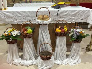 Nakon misnog slavlja uslijedio je blagoslov plodova zemlje, a zajedništvo se nastavilo ispred crkve uz prodaju domaćih kolača koje su pripremile članice KUD-a „Juliška“ i Udruge „Frajle“. Prikupljeni prihod od prodaje namijenjen je misijskim potrebama vlč. Karla Prpića, misionara u Kamerunu u Africi.