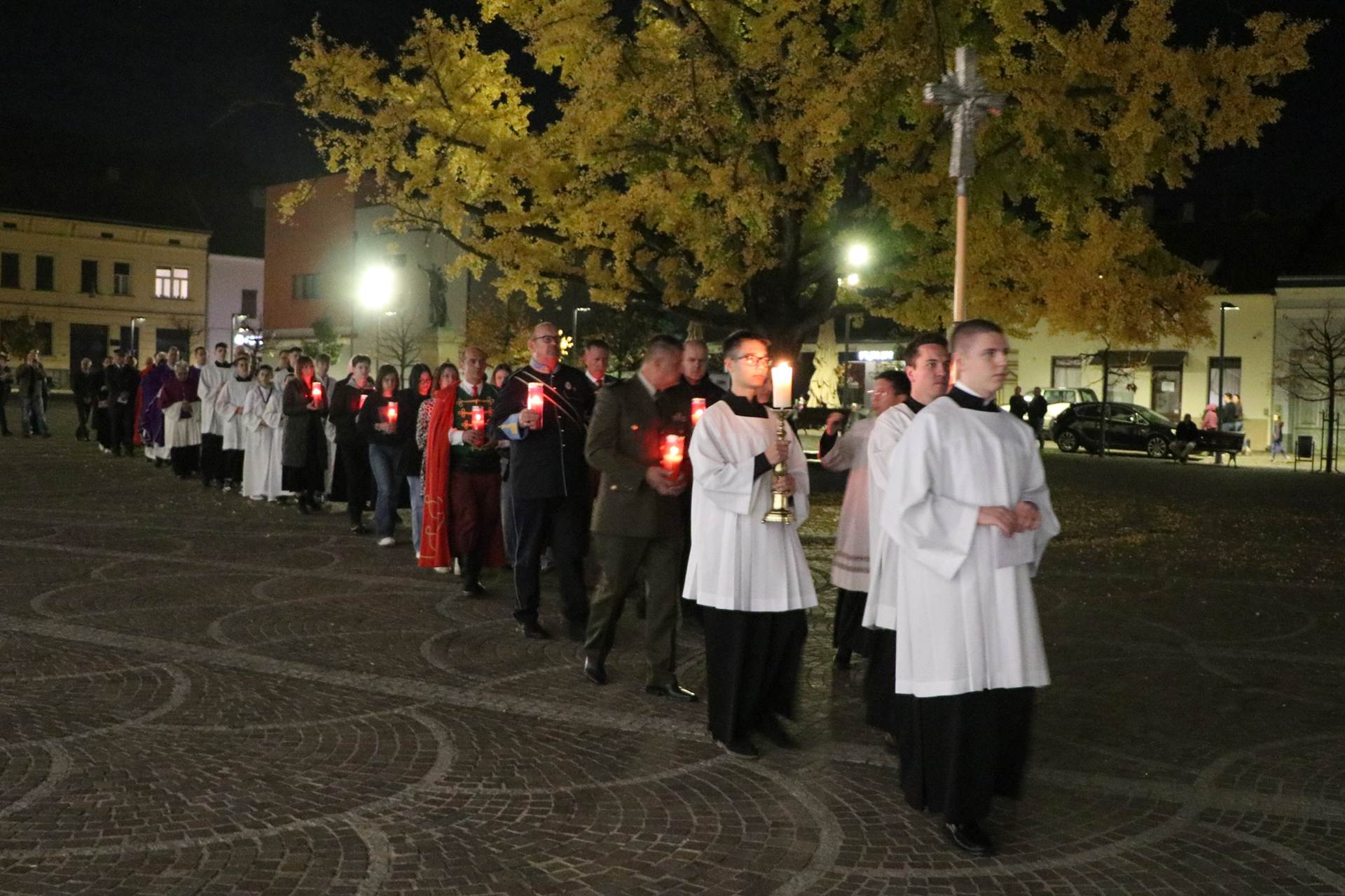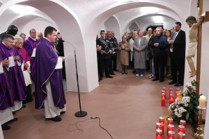 Nakon popričesne molitve predvoditelj Hrgić se sa svećenicima i drugim vjernicima uz zvonjavu katedralnih zvona na spomen preminulih u procesiji uputio u kriptu Katedrale. Ondje su predstavnici svećenika i redovnica, pojedinih gradskih ustanova i udruga, hrvatskih branitelja, policije i vojske, djece i mladih pred velikim križem izrekli molitvu i položili svijeće za pokopane u kripti i druge preminule iz svih redova građanstva, a prepošt Hrgić je zaključio molitvom odrješenja. Na kraju je zahvalio nazočnima što su se na ovom slavlju molitveno spomenuli svih preminulih, i na taj način oživjeli zajedništvo između nas živih i njih preminulih, između neba i zemlje.