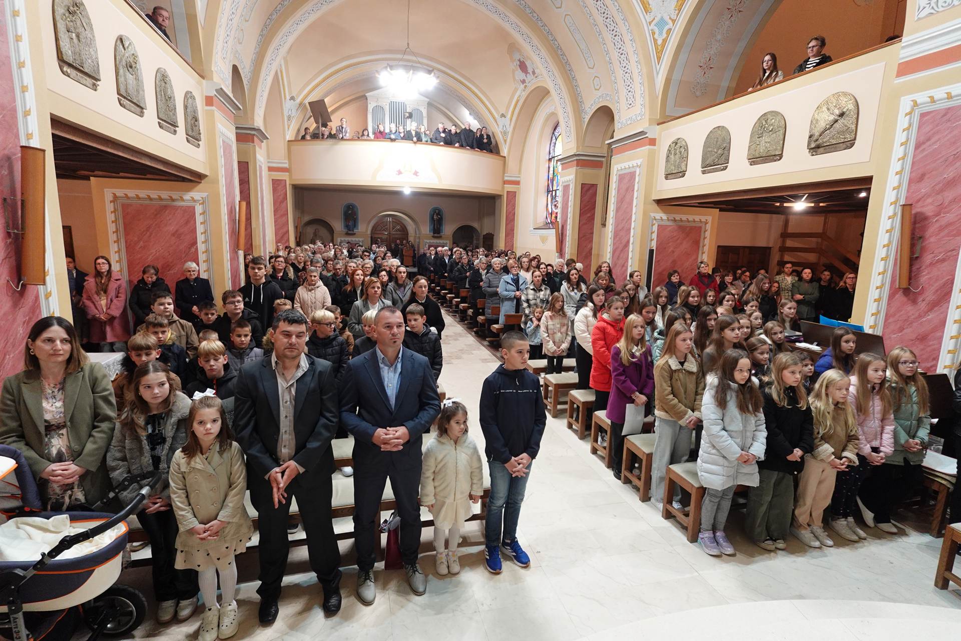 Na početku misnog slavlja biskupa je pozdravio domaći župnik Željko Strnak izrazivši riječi dobrodošlice u ime župne zajednice te mu zahvalio za pastirski pohod. Zahvaljujući na pozdravu, biskup Martinović uputio je vjernicima prigodne riječi istaknuvši radost zbog zajedništva u slavlju sakramenta krštenja. Pozdravio je nazočne vjernike, a na osobit način obitelj Gelemanović podsjetivši ih kako su se okupili kao živa zajednica Crkve koja s cijelom Crkvom danas obilježava Svjetski dana siromaha, te pozvao okupljene na molitvu i solidarnost sa svima koji trpe radi siromaštva i podnos razne patnje i poteškoća. Pozvao je vjernike da u svoje nakane pridruže i molitvu za mir u svijetu, osobito za prestanak rata i stradanja u Ukrajini te svim drugim mjestima pogođenima ratnim sukobima.