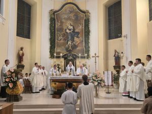 U homiliji je biskup govorio o štovanju Bezgrješne Djevice Marije kroz povijest Crkve, podsjetivši da se časti još od ranog srednjeg vijeka, a posebno otkad je dogma proglašena 1854. godine od pape Pija IX. „Što znači da je Marija bezgrješna? Da je bila oslobođena svakog grijeha, prije poroda, u porodu i poslije poroda. To je istina naše vjere koja nadilazi ljudski razum, ali ne nadilazi Božje djelovanje i mudrost“, naglasio je. Pozivajući se na evanđeoski ulomak o susretu Marije i anđela Gabrijela, podsjetio je da Marija ne dvoji o Božjem pozivu, nego traži razumijevanje, a anđeo joj otkriva da će Duh Sveti sići na nju i da će njezino dijete biti sveto, Sin Božji. „Bog je htio da se njegov Sin nastani u ljudskoj povijesti. Zato bira Mariju i štiti je od istočnoga grijeha od samog trenutka njezina začeća“, istaknuo je biskup, dodavši da je Marijina bezgrješnost dar cijeloj Crkvi te poziv na svetost.