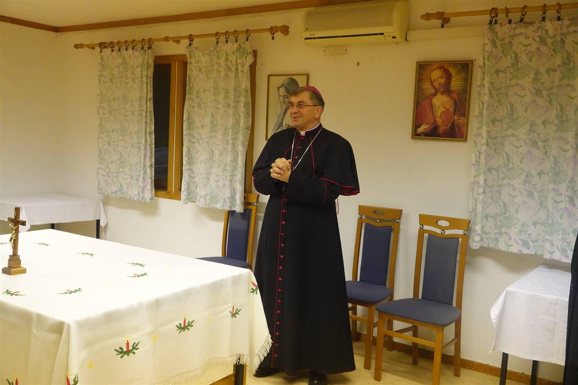 Pozdravljajući okupljene biskup je izrazio radost što se može susresti s njima u predbožićno vrijeme i posvjedočiti blizinu i poštovanje, što je sastavni dio božićnoga otajstva i Isusovog pristupa čovjeku rođenjem od Djevice Marije. Kroz razgovor s prisutnima iskazao je zanimanje za njihove životne situacije i poteškoće s kojima se nose oni i njihove obitelji. Uslijedila je zajednička molitva u koju su bile uključene sve patnje i problemi nazočnih osoba. Biskup je poručio da su svi potrebni božićne blizine jer u njoj Isus, mali Bog, svojim rođenjem otkriva Božju ljubav. Istaknuo je kako „postoje, nažalost, različiti načini da čovjek današnjeg vremena bude sam i usamljen“, te da se to događa i osobama koje su okružene mnoštvom ljudi, ali gdje su prisutni problemi, svađe i netrpeljivosti. Nazočnim stanovnicima je čestitao Božić i božićne blagdane sa željom da dožive Spasiteljevu blizinu koja donosi radost i snagu za ljepotu života u svakodnevici.