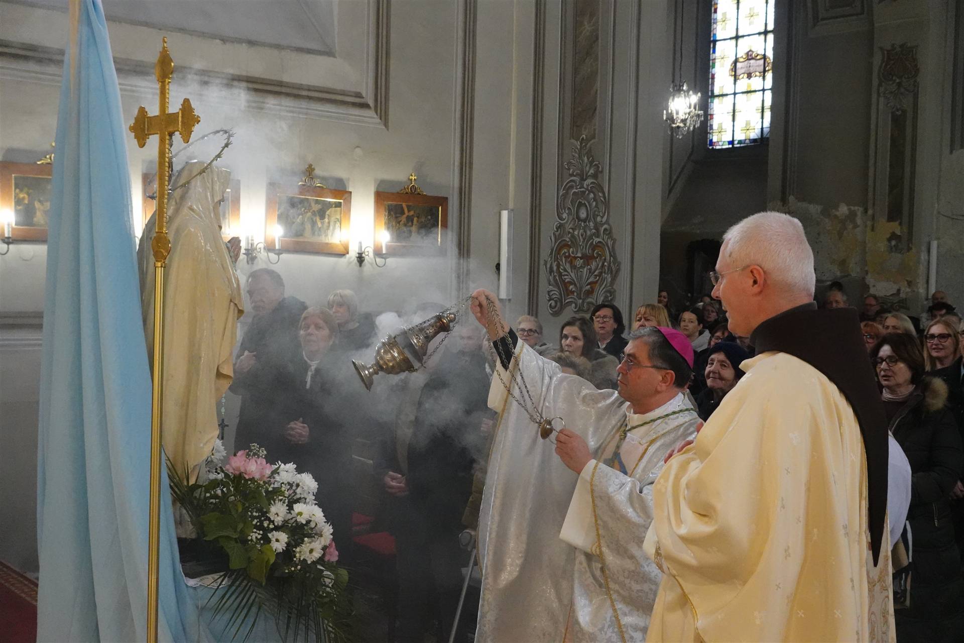 Biskup je na početku mise zahvalio gvardijanu fra Juri Šimiću na pozivu i pozdravu te je pozdravio sve okupljene franjevce, svećenike i vjernike. Poručio je da sa svima njima želi zahvaliti Gospi za njezinu majčinsku prisutnost u njihovom životu, vjeri i hodu s Bogom, istaknuvši kako je slavlje prigoda da svi zajedno upute svoju  molitvu na osobit način za bolesnike i patnike na duši i tijelu, za liječnike i medicinsko osoblje, za sve koji im pomažu i brinu za njih.