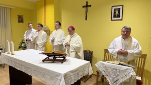 Govoreći o pročitanom evanđeoskom odlomku koju opisuje Marije pod križem, istaknuo je da Marija pod križem nije umrla, „ali je, možemo reći, njezina duša bila je razapeta“. U tom je kontekstu zahvalio zdravstvenim djelatnicima na njihovoj službi dodavši da Bog po njima ostvaruje djelo svoje ljubavi u životu bolesnika i obitelji koje su obilježeni teškim križevima, patnjama i umiranjem. Podsjetio je da svoju ljubav, služenje i žrtvu koju čine promatraju u svjetlu Isusovih riječi: „Što god učiniste jednom od ove moje najmanje braće, meni učiniste“, naglasivši da je njihovo služenje ujedno služenje i darivanje Bogu.