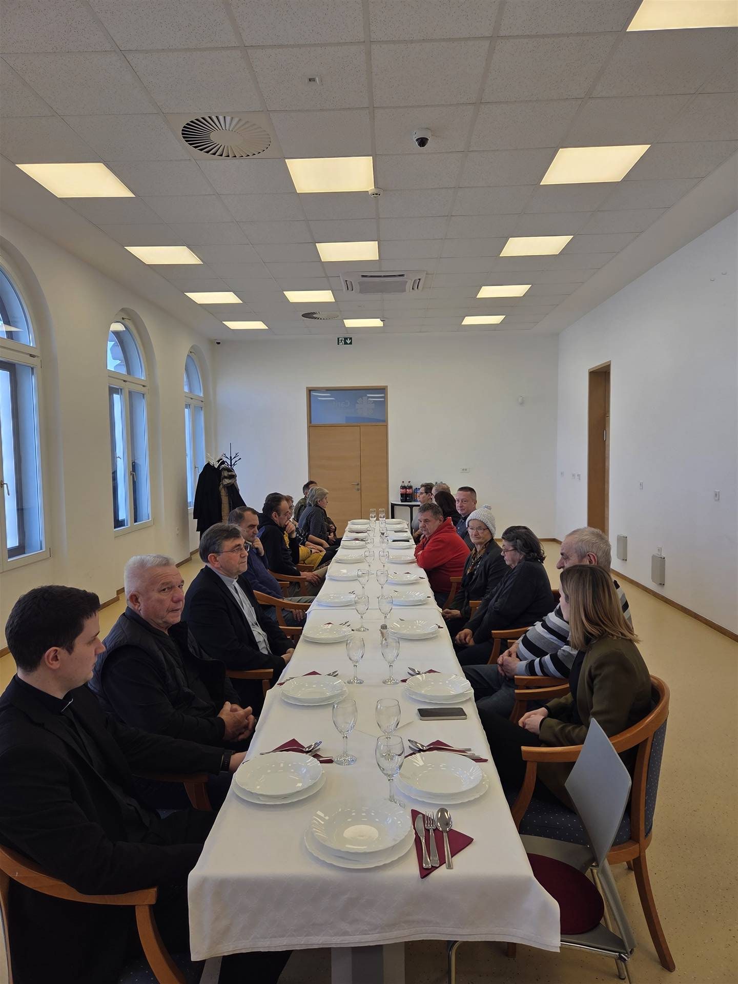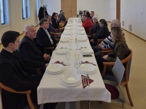 Biskup Martinović je ravnateljici Caritasa Katarini Paulić i svim prisutnima uputio riječi zahvale i podrške te je predvodio molitvu blagoslova objeda zazivajući na djelatnike Caritasa i njegove korisnike obilje Božjeg mira i snage. Izrazio je zahvalnost svima koji su sudjelovali u susretu, osobito onima koji u ljubavi i služenju čine žrtve da se mnogim korisnicima Caritasove kuhinje dostavlja hrana.
