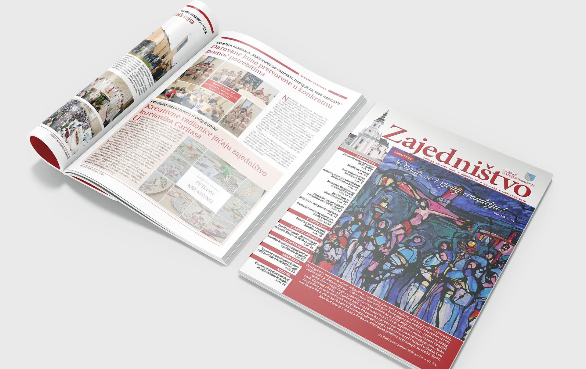 Požeška biskupija objavila je u petak 20. veljače 2026. godine novi, 122. broj glasila „Zajedništvo“, koji i ovoga puta donosi bogat i raznolik sadržaj iz života mjesne Crkve. Središnje mjesto zauzima Korizmena poruka požeškog biskupa Ive Martinovića „Obrati se i vjeruj evanđelju!“ (usp. Mk 1,15), u kojoj vjernike poziva na ozbiljan i odgovoran hod korizmenim putem obraćenja, molitve i djela ljubavi.